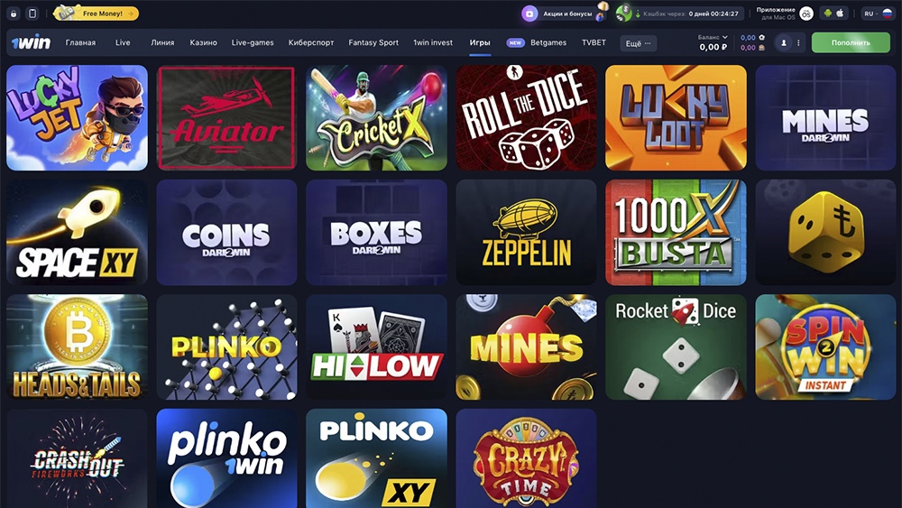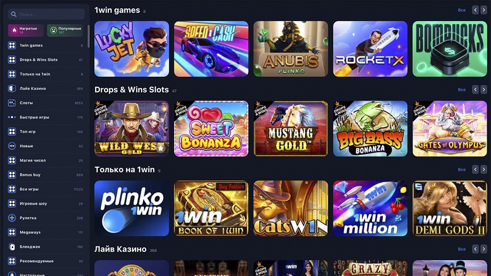 Ассортимент азартных игр на официальном сайте казино 1Win впечатляет. Игрокам доступно более 7000 игр на любой вкус. Помимо игровых автоматов, пользователи могут делать ставки на спорт и киберспорт, и также играть в покер.