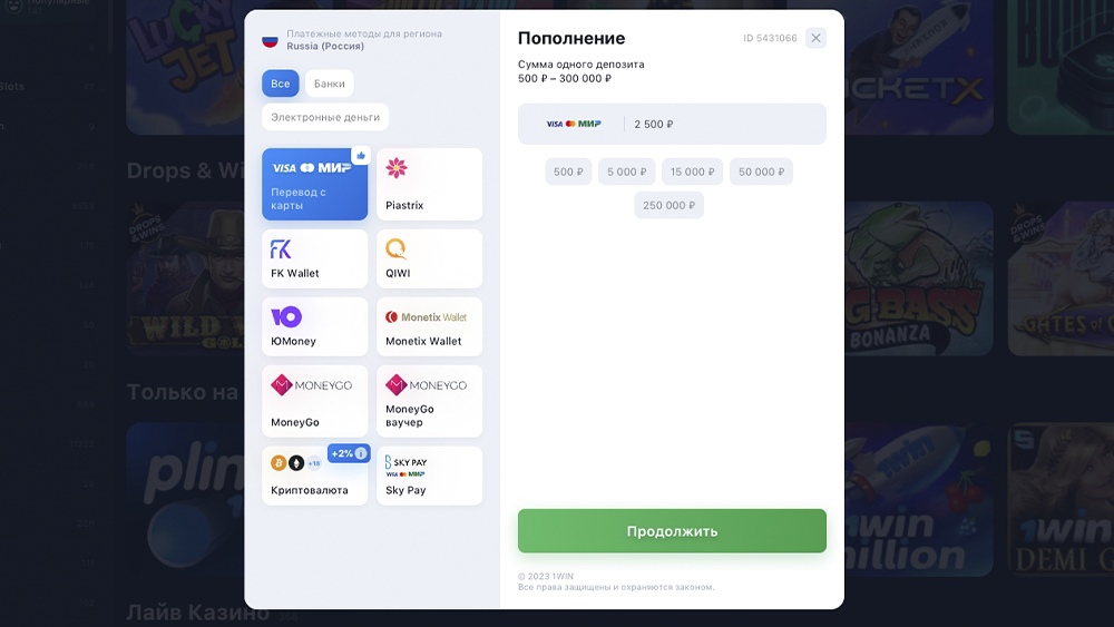 Платежные методы 1Win Casino